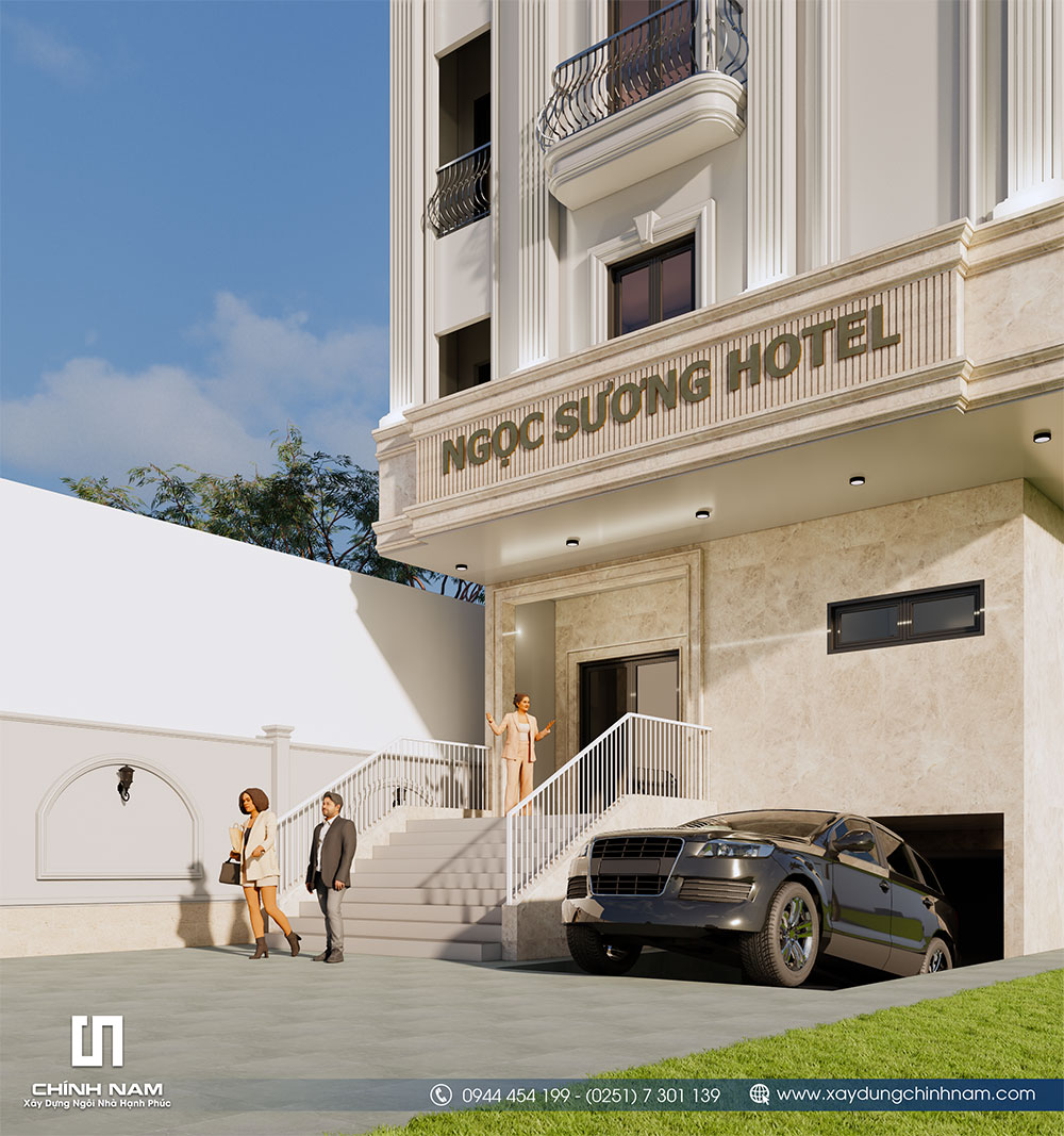 Trong lĩnh vực kinh doanh lưu trú, thiết kế kiến trúc khách sạn không chỉ dừng lại ở việc tạo nên một công trình đẹp mắt mà còn là giải pháp chiến lược giúp gia tăng giá trị khai thác và nâng cao hình ảnh thương hiệu. Một khách sạn được thiết kế tốt phải đảm bảo sự cân bằng giữa thẩm mỹ kiến trúc, công năng vận hành và trải nghiệm của khách lưu trú. Dự án Ngọc Sương Hotel được đội ngũ kiến trúc sư Chính Nam định hướng theo triết lý thiết kế bền vững, nơi mỗi chi tiết kiến trúc đều phục vụ mục tiêu tối ưu công năng và gia tăng hiệu quả đầu tư dài hạn. Ngay từ giai đoạn thiết kế, các yếu tố về bố cục mặt bằng, giao thông nội bộ, tổ chức không gian và khả năng khai thác phòng đã được tính toán đồng bộ nhằm mang lại hiệu quả vận hành tối ưu cho chủ đầu tư.
