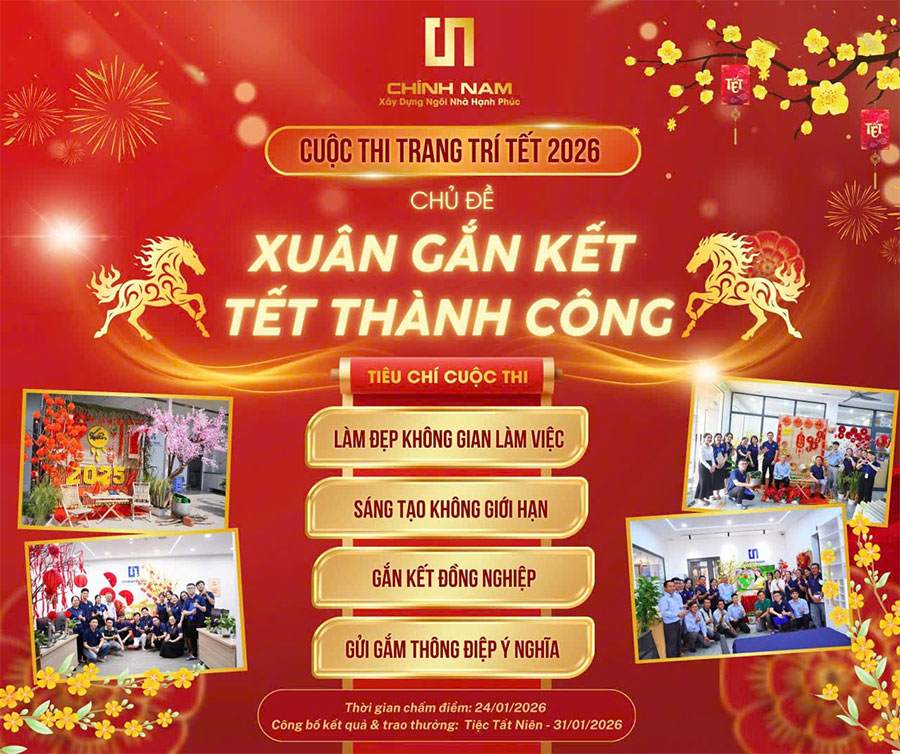 Không khí Tết tại văn phòng Công ty Cổ phần Thiết kế Xây dựng Chính Nam trở nên sôi động và ấm áp trong những ngày đầu năm khi Cuộc thi Trang trí Tết được tổ chức với sự tham gia của đông đảo phòng ban. Chương trình không chỉ góp phần làm mới không gian làm việc, tạo điểm nhấn thẩm mỹ rõ nét, mà còn được xem là hoạt động nội bộ nổi bật, lan tỏa tinh thần gắn kết và củng cố văn hóa doanh nghiệp.