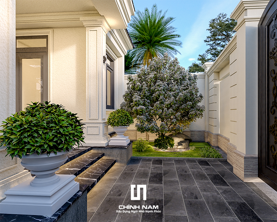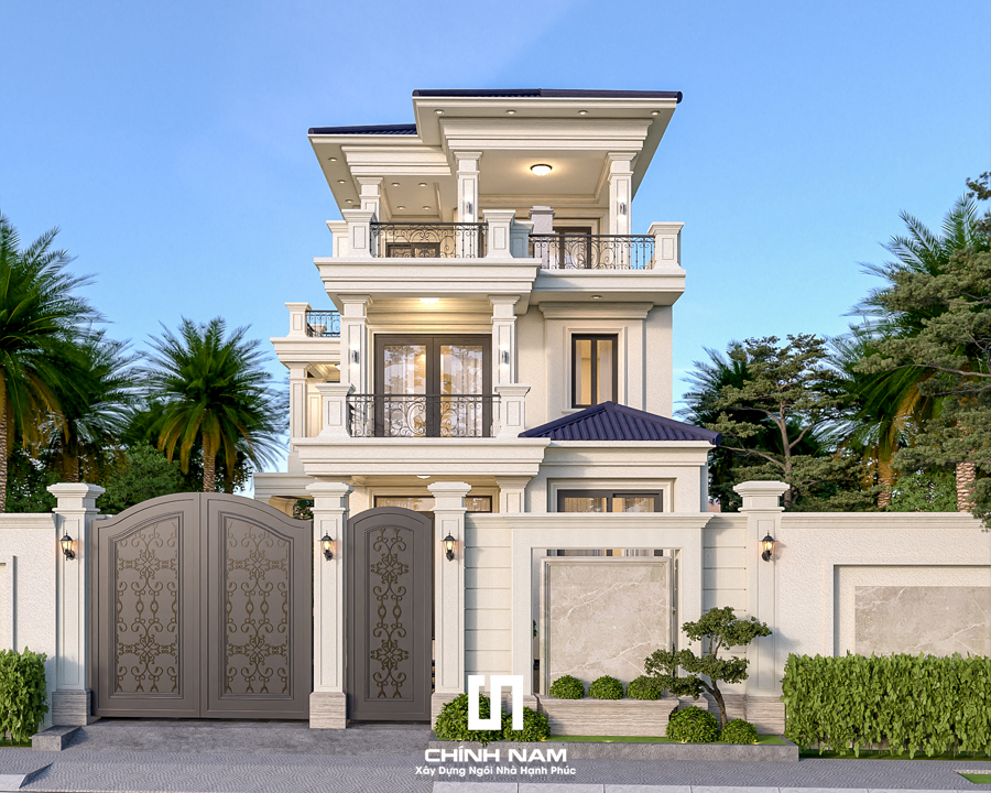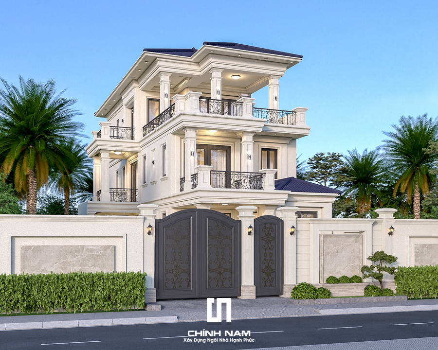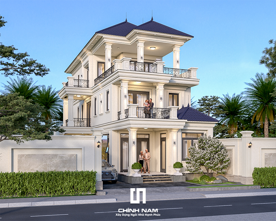 Ngôi biệt thự 3 tầng mái Nhật được đội ngũ Kiến trúc sư Chính Nam thiết kế mang vẻ đẹp Tân cổ điển tinh tế, là sự kết hợp hài hòa giữa nét sang trọng và sự hiện đại trong bố cục. Tổng thể công trình nổi bật với hệ cột vuông vững chãi, phào chỉ nhẹ nhàng và tỷ lệ cân đối tạo nên dáng vẻ kiêu sa nhưng không phô trương.