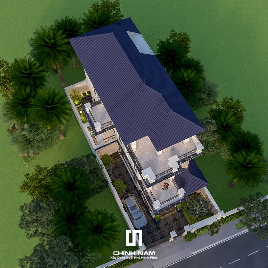Nhìn từ trên cao, công trình gây ấn tượng với khối kiến trúc đăng đối, mái chồng mái thanh thoát, và ban công mở rộng ở mỗi tầng, nơi ánh sáng, gió và thiên nhiên giao hòa cùng nhịp sống của gia đình. Từng chi tiết trong thiết kế đều phản ánh tâm huyết và sự chỉn chu của đội ngũ Kiến trúc sư Chính Nam – người kiến tạo nên một không gian sống đẳng cấp, tinh tế và mang đậm dấu ấn cá nhân của gia chủ.